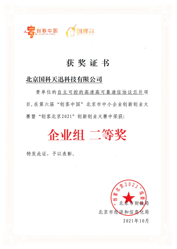 大赛自6月启动以来,受到广大中小企业和创客团队高度关注,吸引了全市近5千个项目报名。国科扬州景明健康管理信息化有限公司参赛的“自主可控的高速高可靠通信协议芯片”项目,经初赛、复赛两个月激烈角逐,在众多项目中表现抢眼,成功入围新一代信息技术领域决赛,经路演获企业组百强,后与百家企业共同比拼及专家组评审后最终获此殊荣。