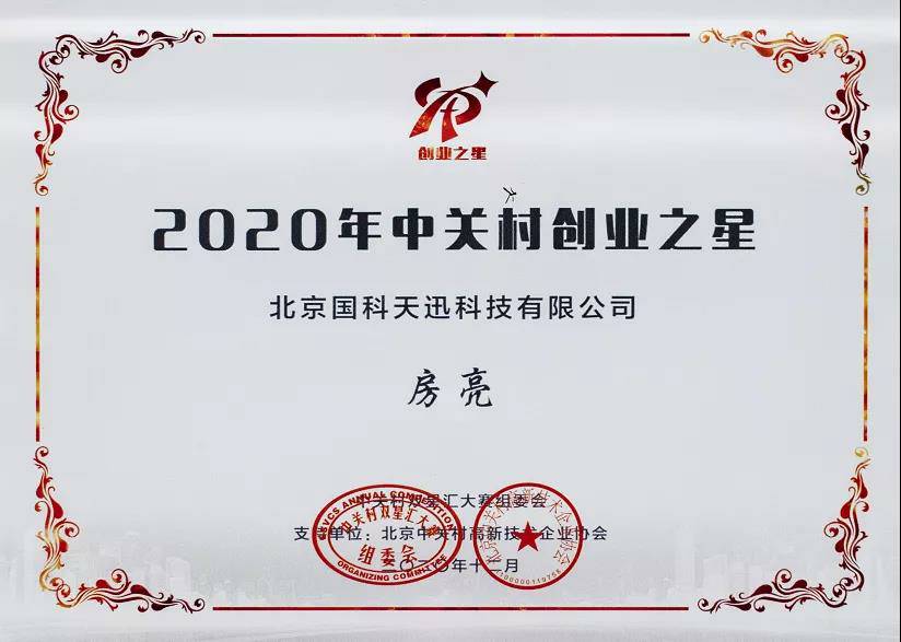 12月21日,在北京市科委、中关村管委会、中关村科学城管委会的指导与支持下,由北京中关村高新技术企业协会主办的2020中关村“双星汇—创业之星”榜单隆重发布。经严格的数据核实及分析、评委会审议、大数据舆情调查等程序,国科扬州景明健康管理信息化有限公司创始人房亮从众多杰出创业者中脱颖而出,荣获“2020年中关村创业之星”荣誉称号。